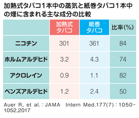①ニコチンが少ない→✖以下の表をご覧頂くと、加熱式タバコ、紙タバコに関して、そもそもそんなにニコチン量が少ないわけではないことが分かります。しかも、ニコチン依存症の方は血中ニコチン濃度が上がるまで吸いたくなるので、1本当たりの摂取量が減るとより沢山吸ってまかなうことになるだけです。