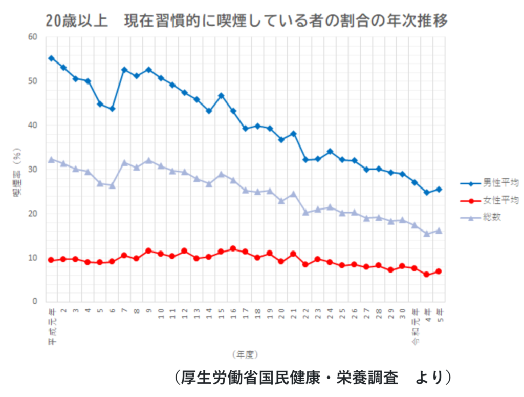 ※喫煙率がどんどん低下していることは非常に良い変化であると思います!